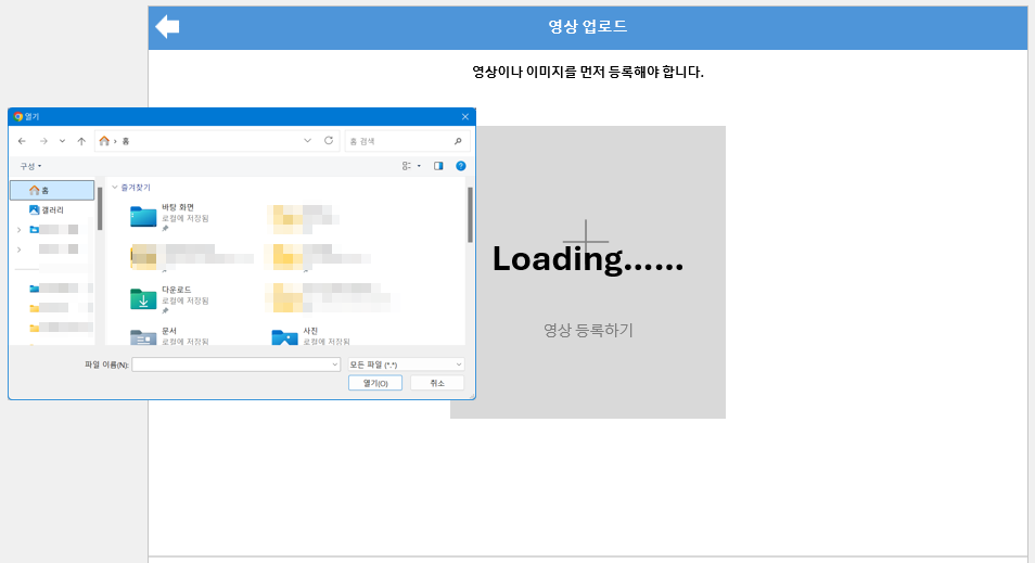 사진(.jpg, .png etc)이나 영상(.mp4)을 업로드하는 화면이다.