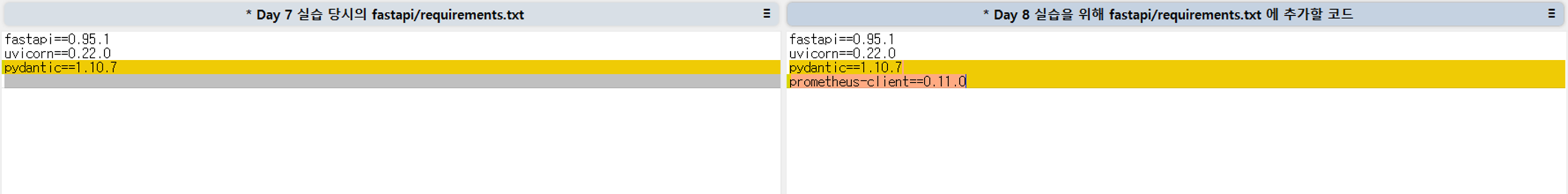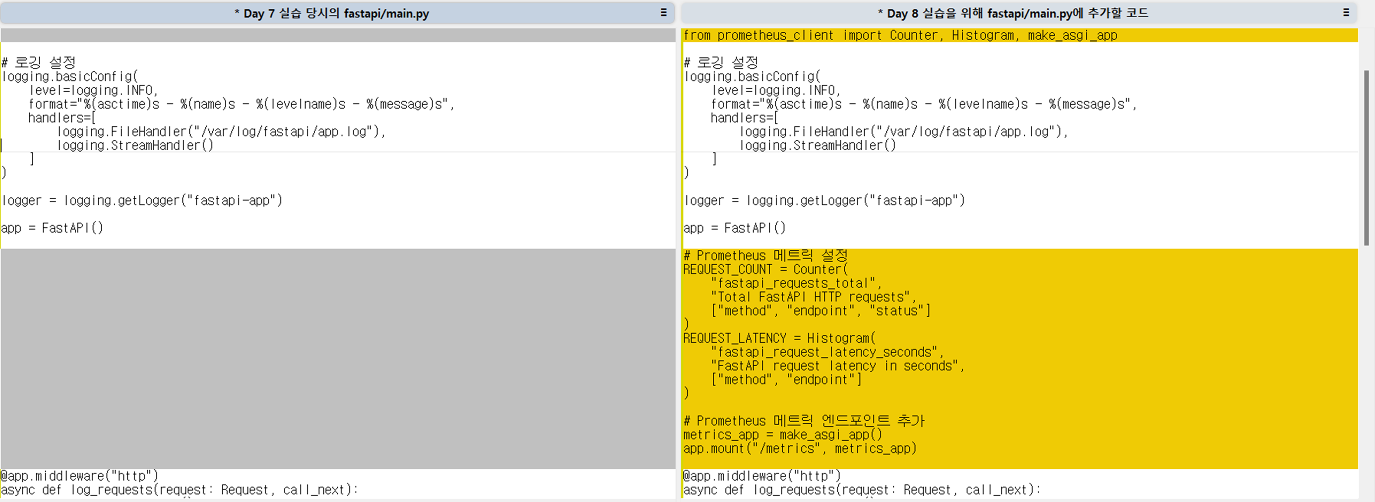 | prometheus-client | Prometheus용 메트릭 라이브러리 | /metrics 노출 |