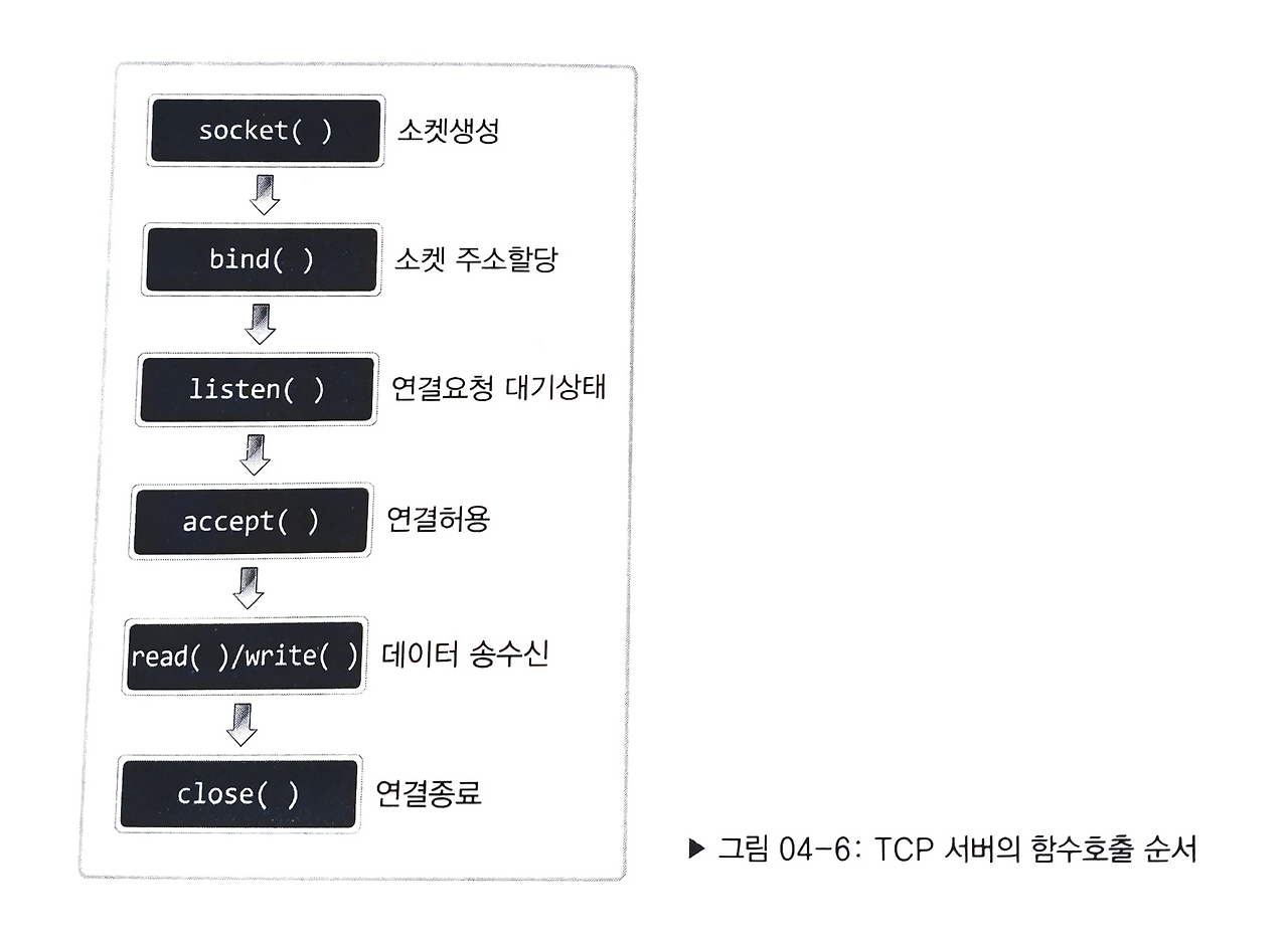 소켓 객체(도구) 생성이 먼저이며, 순서는 다음과 같다.