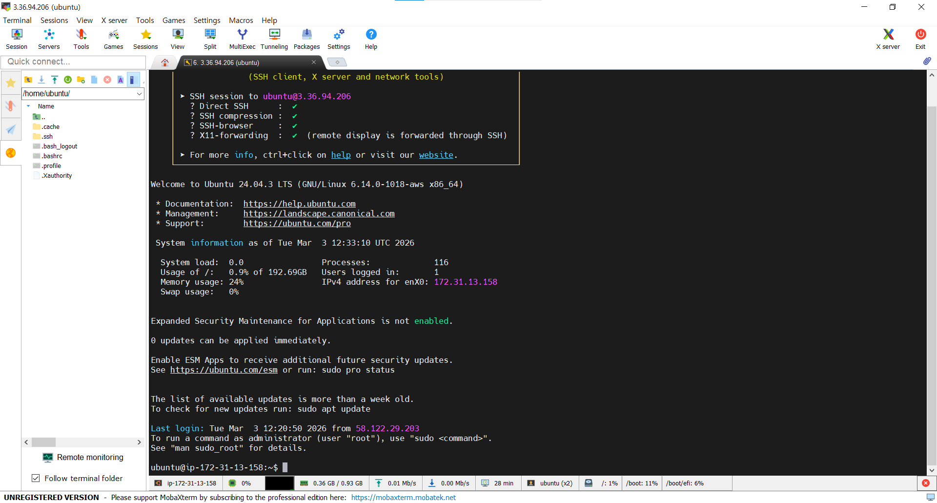- Username : ubuntu (default)