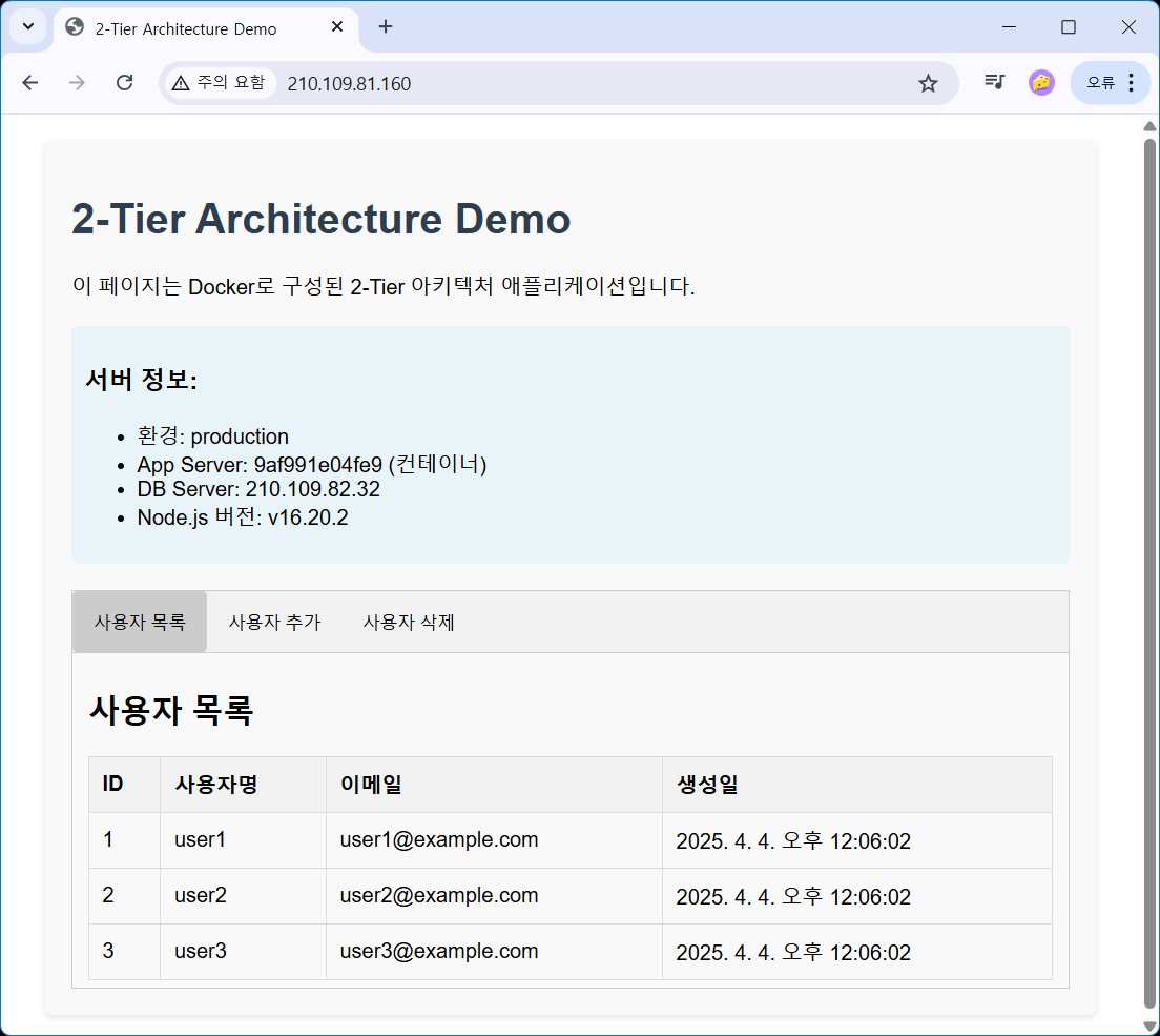 간이 3 Tier Application 배포 실습 (2+1) - Client+Server / Database