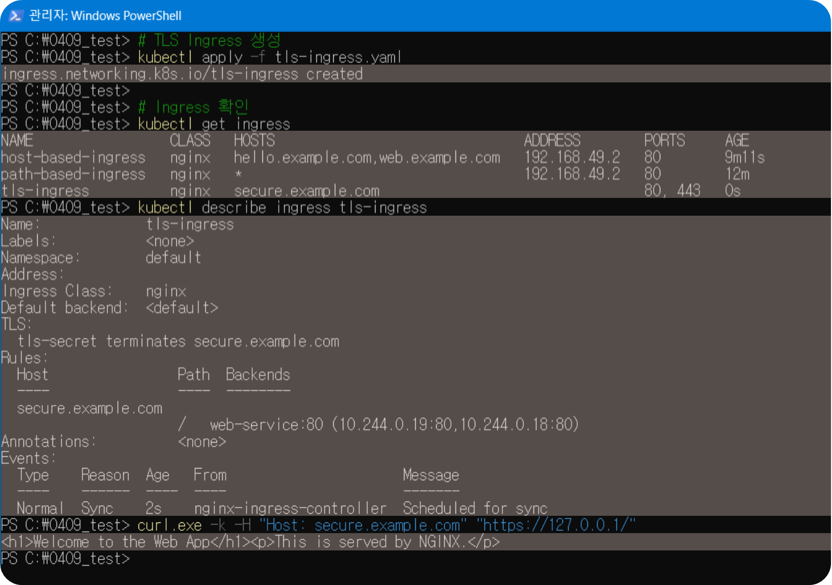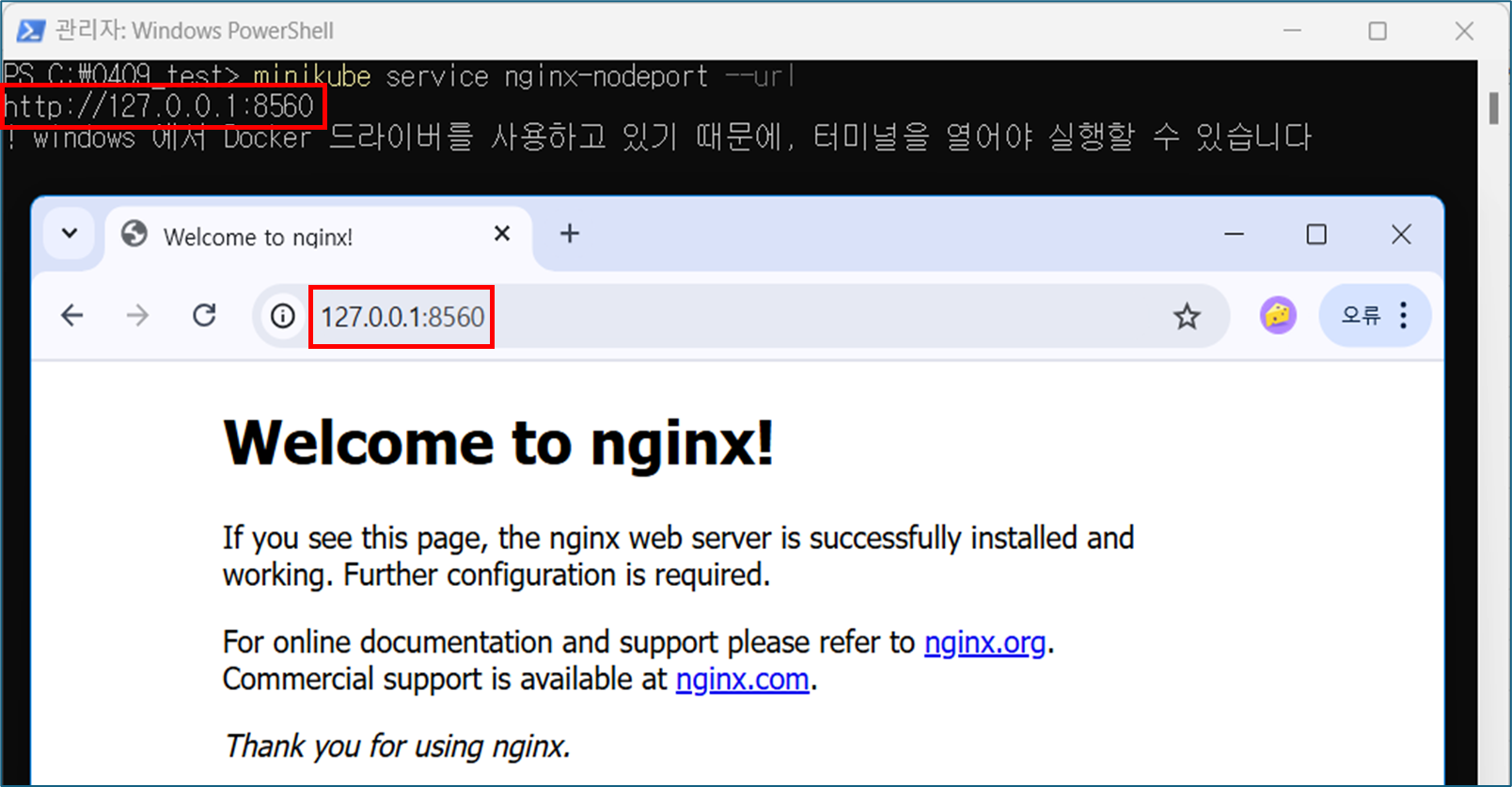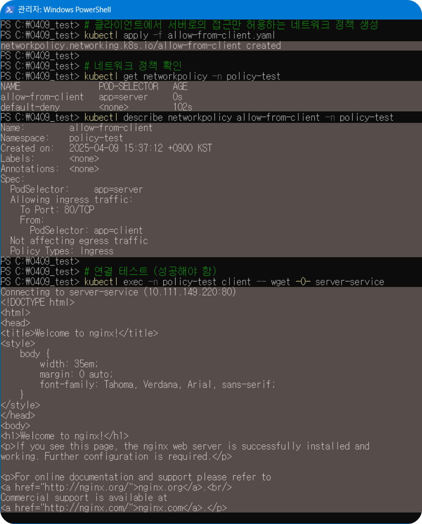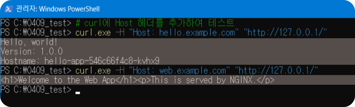 # ㄴ 서비스에 HTTP 요청 (nginx-clusterip라는 도메인으로 HTTP요청 전송): HTML, 텍스트 등 반환