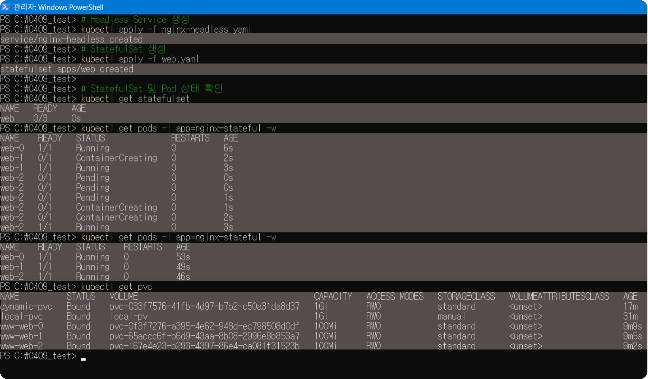 StatefulSet을 사용하여 각 Pod에 고유한 PVC를 자동으로 생성하고 관리해 보자.