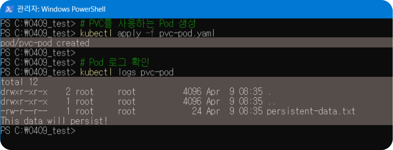 kubectl exec pvc-pod-2 -- cat /data/persistent-data.txt