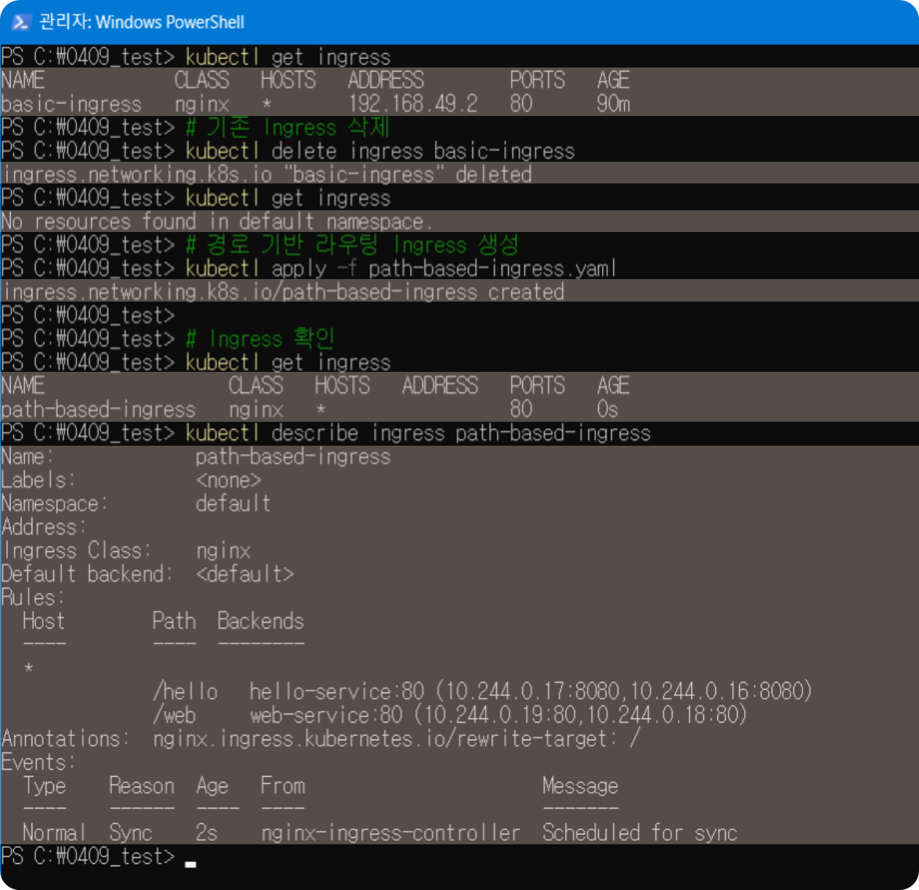 # ㄴ DNS 이름 해석 테스트 (서비스이름->IP 주소 변환되는지 확인) : IP 주소 반환