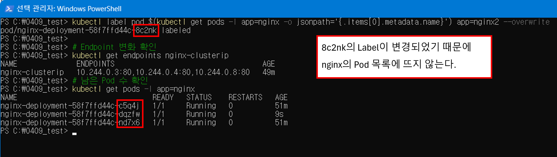 서비스가 올바르게 Pod를 가리키고 있는지 Endpoint를 확인하기