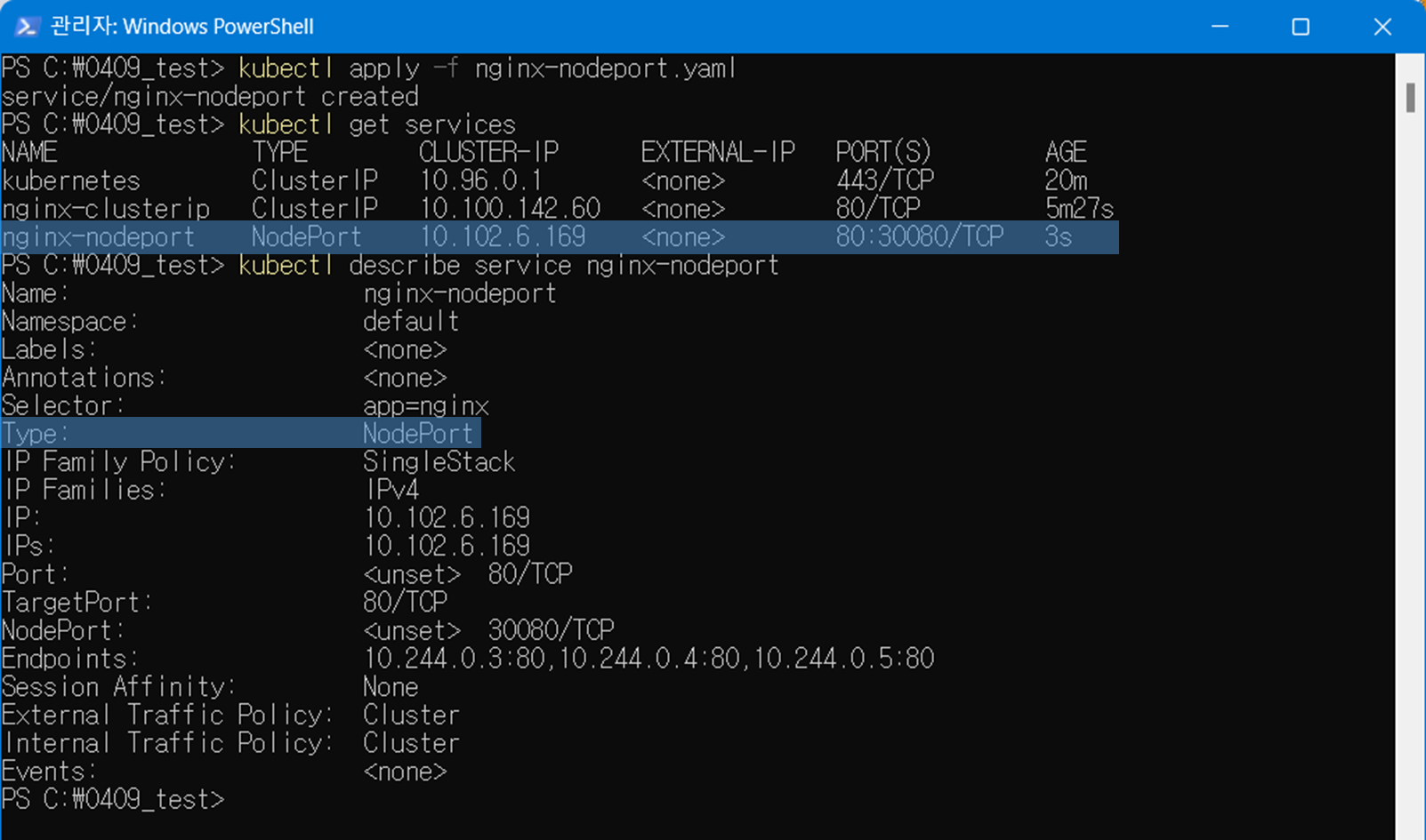 Minikube 환경에서 다양한 서비스 유형을 생성하고 테스트해보는 실습