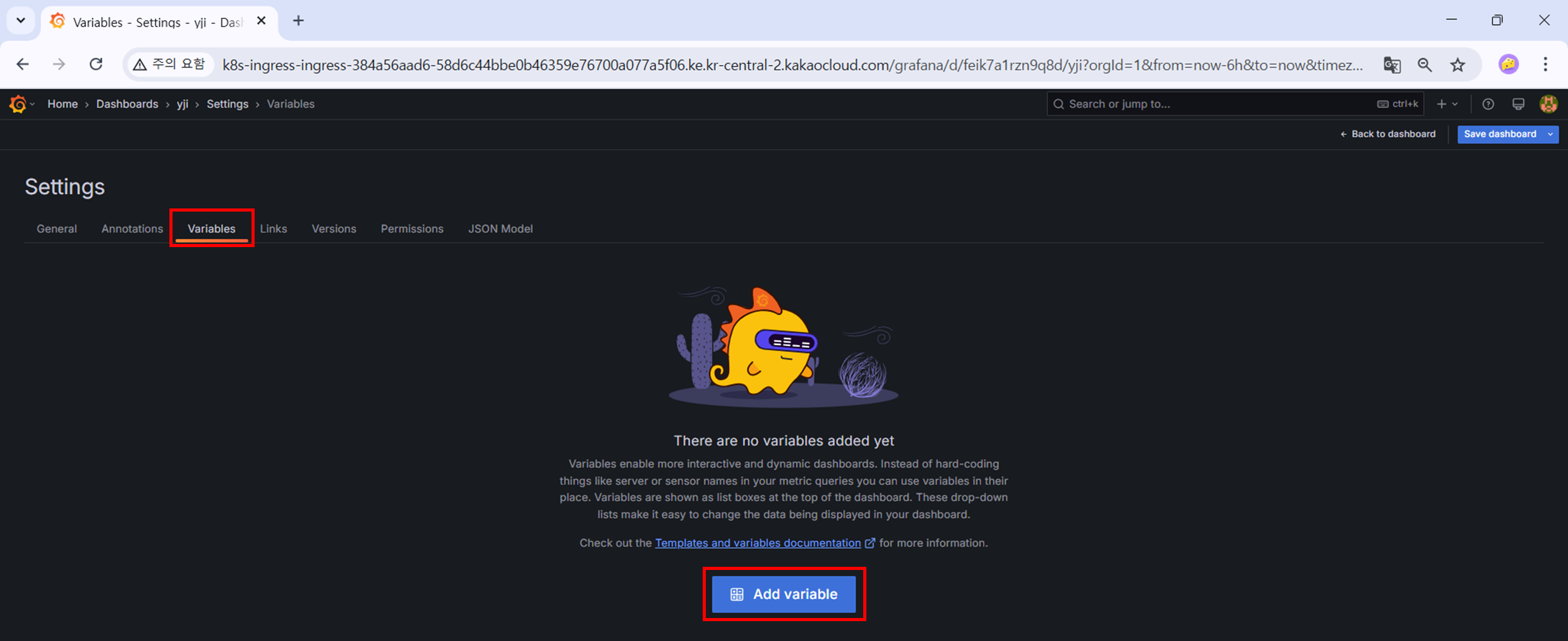 - "Variables" 선택 > "Add variable" 클릭