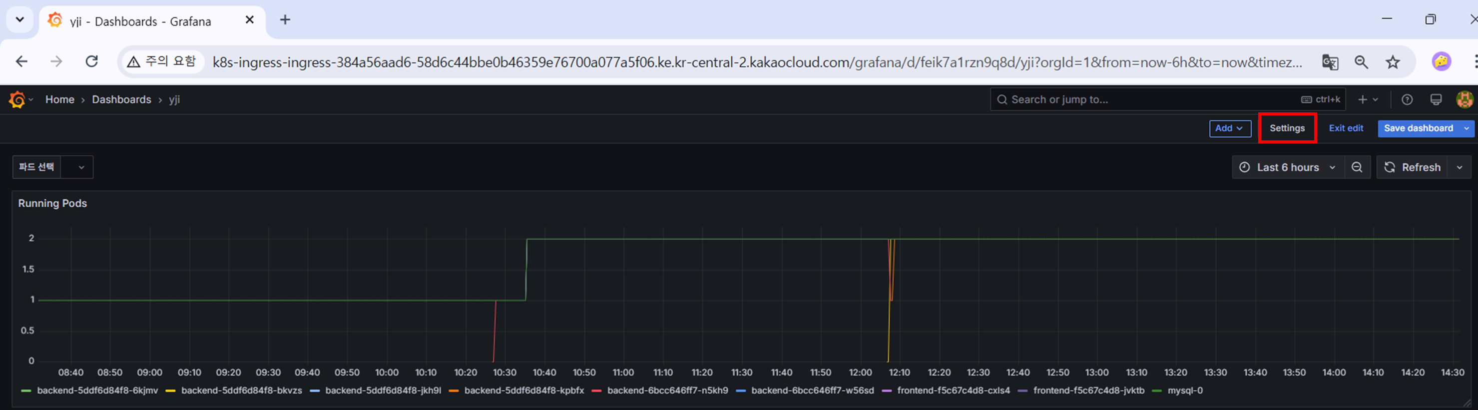 - 대시보드 설정 열기 (우측 상단 Settings 버튼 클릭)