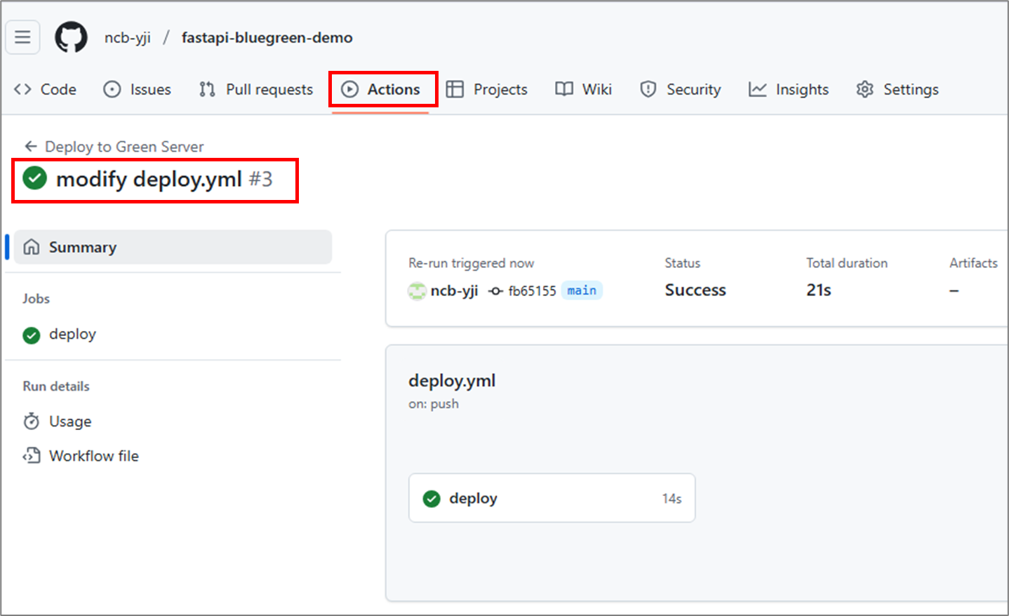 3. GitHub Actions 워크플로우 배포 & 실행 테스트