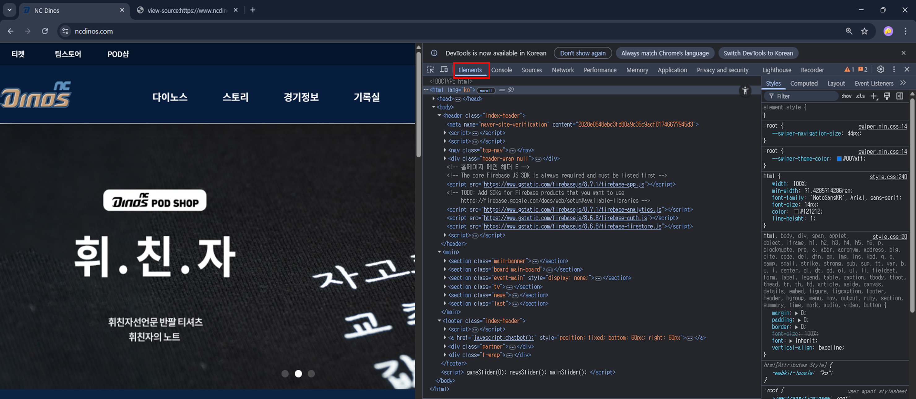 원본 페이지의 동작을 확인하면서 카피하다보니, NC Dinos 홈페이지에 몇가지 버그가 눈에 띄었다.
