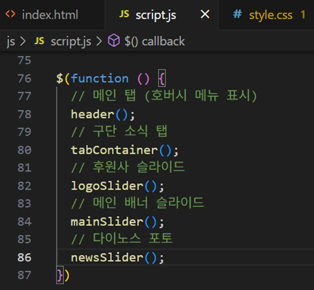 - 이미 mainSlider()는 초기에 잘못된 요소를 잡았더라도, 이후 초기화된 newsSlider()가 DOM에 영향을 주진 않음